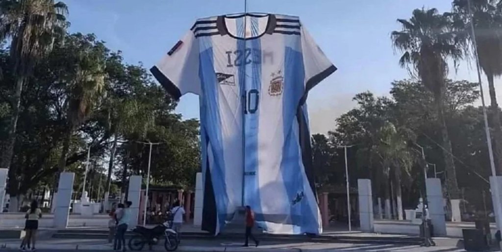 Confeccionaron la camiseta argentina más grande del país: "Vendí mi auto para comprar la tela"