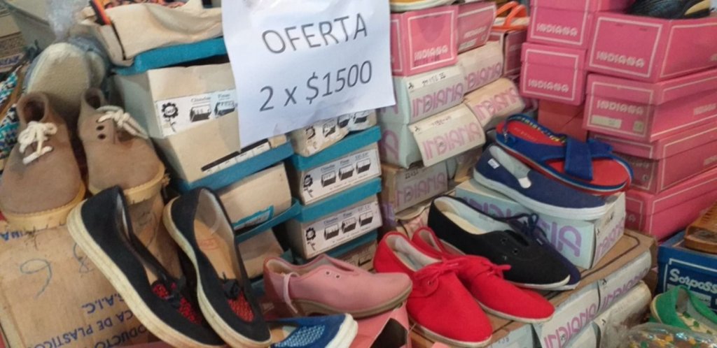 Jorge Pizarro conversó con Javier Marcianesi, quien se dedica a realizar ventas de garaje, y localizó un antiguo centro de distribución en Los Hornos, La Plata, de lo que fue la antigua fábrica de alpargatas, y hoy venden zapatillas para niños desde 2 por $1500.