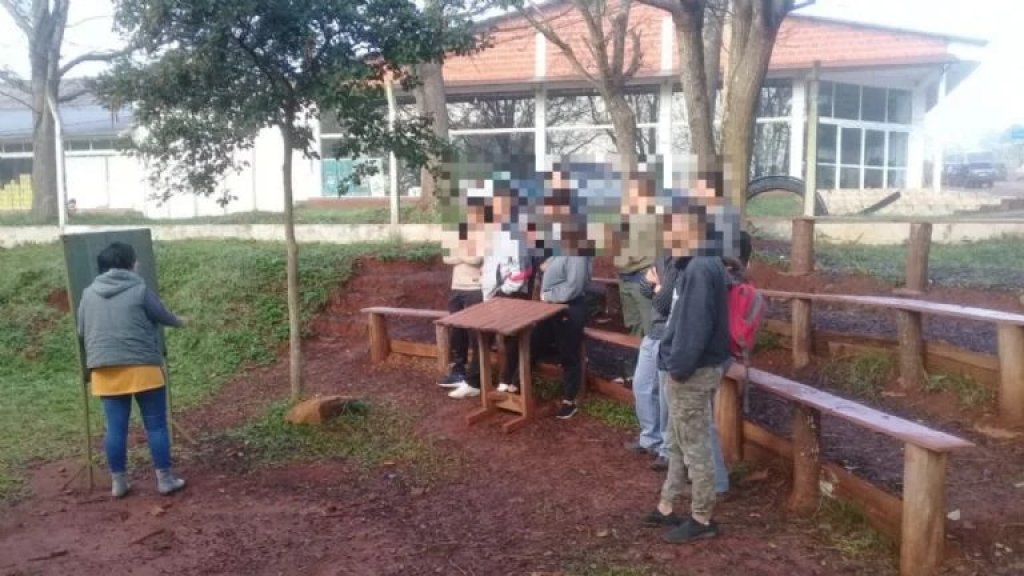 Por falta de espacio en la escuela armaron aula abajo de los árboles
