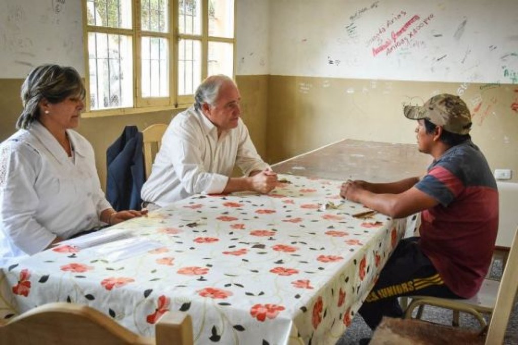 Jorge Pizarro con Francisca Juárez, directora del núcleo educativo Nº 7030 de Misión Wichí donde el joven de 24 años Raúl González, que es jefe de familia, decidió volver a la escuela y empezar la primaria desde cero. "Tiene muchísimo interés y fortaleza personal", expresó.